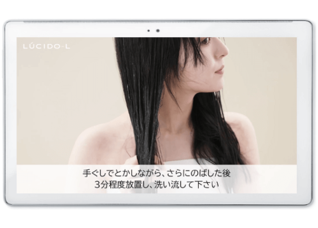 美容サロンの席に設置されたタブレットに、